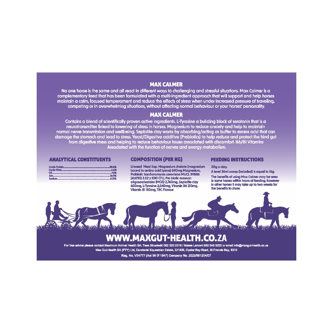 Max Calmer is the latest product from Maximum Animal Health and contains a blend of scientifically proven active ingredients. Horses show signs of been anxious for a wide number of reasons. With maximum animal health’s multi-ingredient approach and formulation, the ingredients work in different ways and can start to take effect within two- three hours and the full benefits will be seen in most horses within two to three weeks.