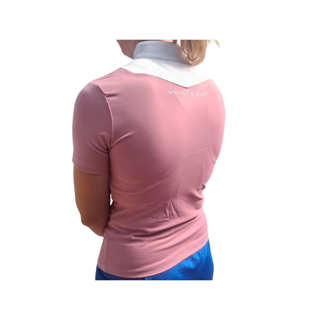 Ride in comfort and style with the Whinny & Woof short sleeve show shirt. Crafted from lightweight, breathable fabric, it keeps you cool and polished in the arena. The tailored fit offers a sleek, professional look, while the stretch material allows full freedom of movement. Perfect for competition days or a classic schooling style.